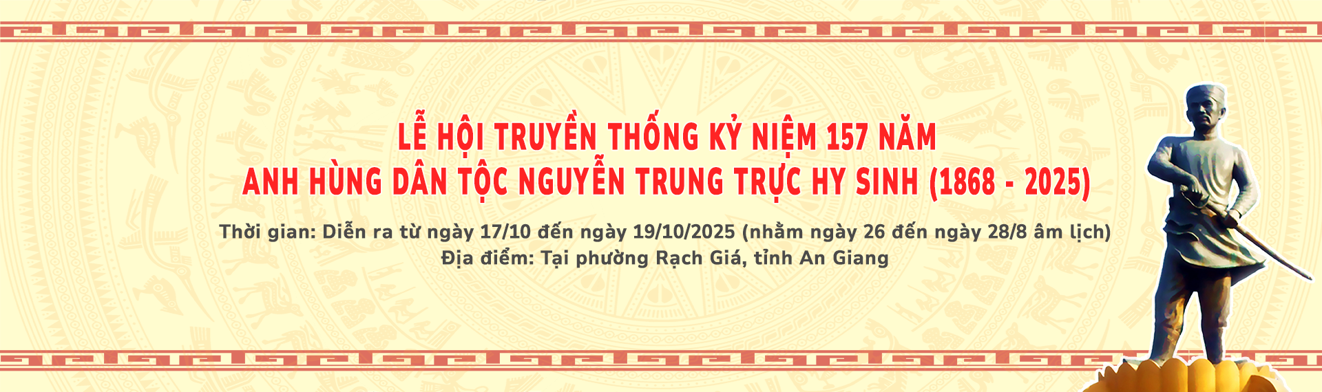 Lễ hội truyền thống kỷ niệm 157 năm ngày Anh hùng dân tộc Nguyễn Trung Trực hy sinh diễn ra từ ngày 17 đến ngày 19/10/2025 (26 – 28/8 âm lịch) tại phường Rạch Giá, tỉnh An Giang. Sự kiện nhằm tưởng nhớ công lao to lớn của vị anh hùng dân tộc, đồng thời góp phần bảo tồn và phát huy giá trị di sản văn hóa phi vật thể quốc gia “Lễ hội Đình thần Nguyễn Trung Trực – Rạch Giá”.